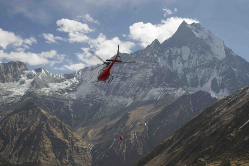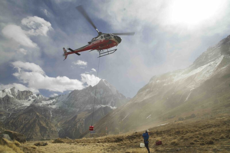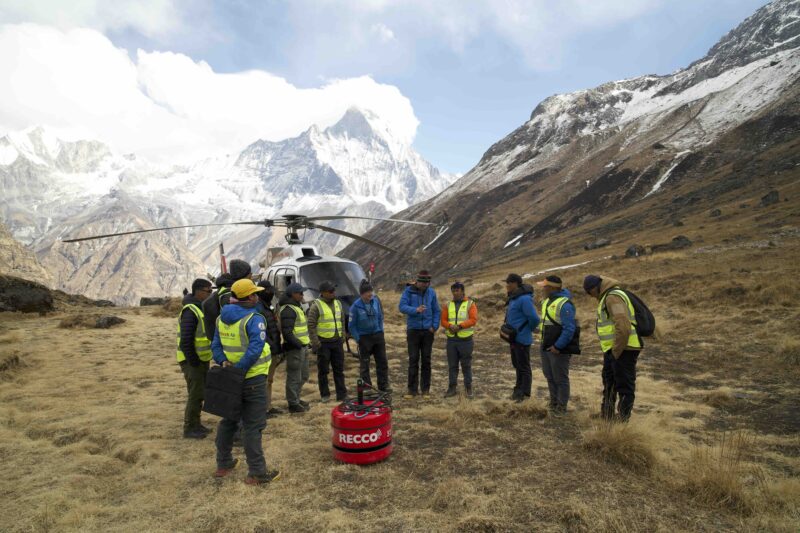 I had been to Nepal a lot for expeditions and mountaineering before, but the rescue service was a coincidence. In 2009 I got a message from Slovenia that Tomaž Humar had an accident at Langtang Lirung. I was asked if we had a solution to help him. After that, we flew to Nepal every year to train sherpas and pilots. During the earthquake in 2015 we were asked to help and to fly with a hanging load, which requires special training. At that time, we were flying material to valleys where the earthquake had destroyed everything. We also helped to build schools and a hospital. I was last there to educate about RECCO in January this year.